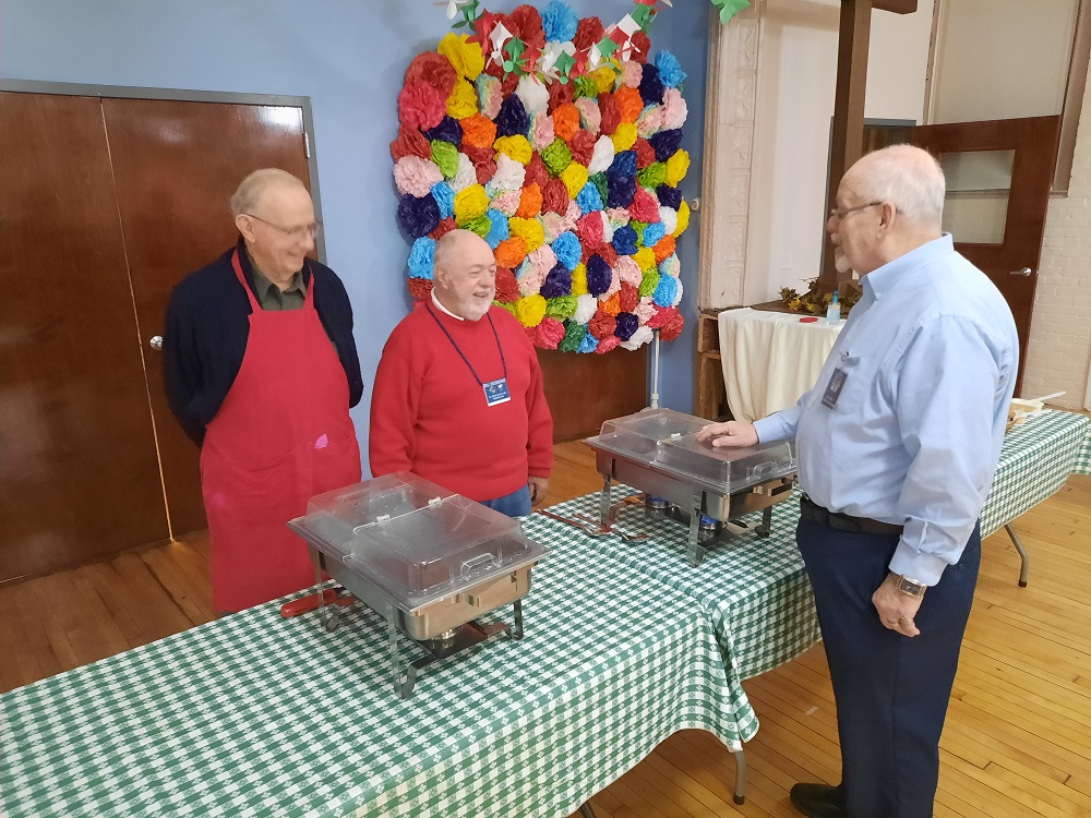 Dec 16, 2022. St. John's Council hosts a spagetti dinner before a Christmas Concert by the Sicilian Tenors and the St. John's Choir. (LtoR) Br. Bob Willson, Br. Bill Desmond, and Br. Joe Swiss.