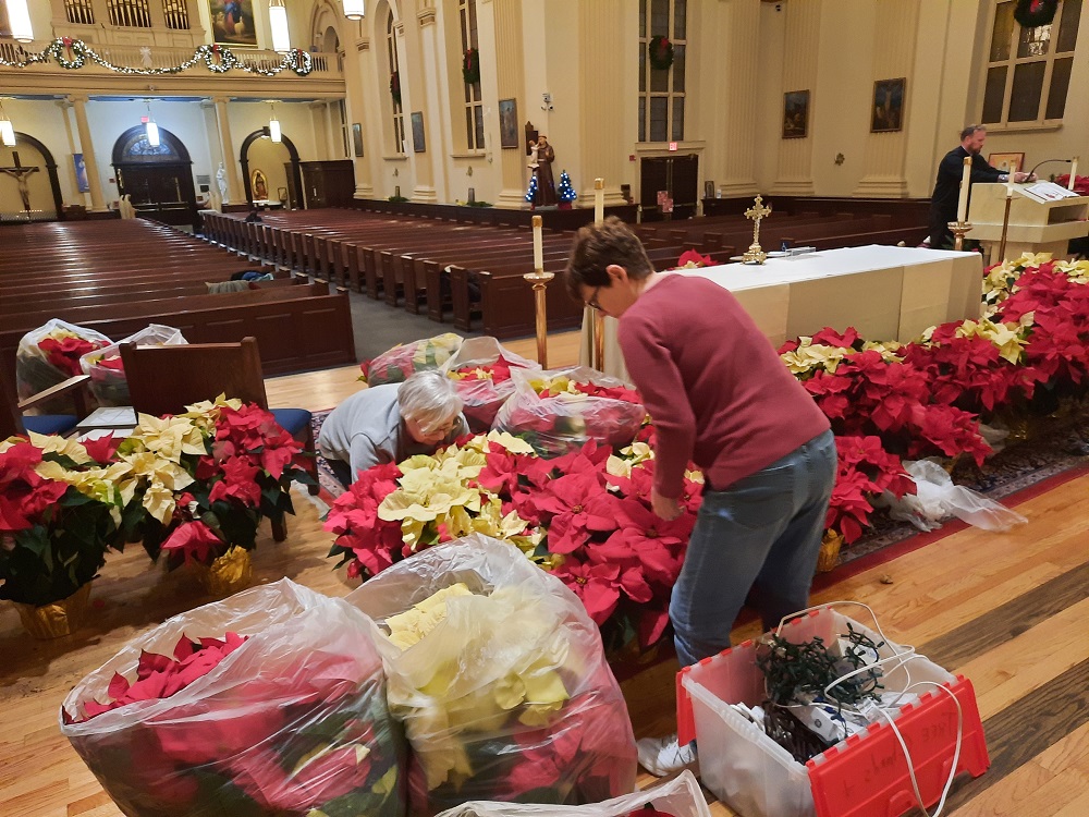 Dec 23, 2022. Knights help with decorating St. John the Evangelist Church for Christmas. Phase II, adding flowers. Cindy Satterfield works with poinsettias.