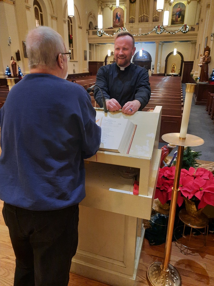 Dec 23, 2022. Knights help with decorating St. John the Evangelist Church for Christmas. Phase II, adding flowers. Br. Joe Swiss and Fr. John Williamson.