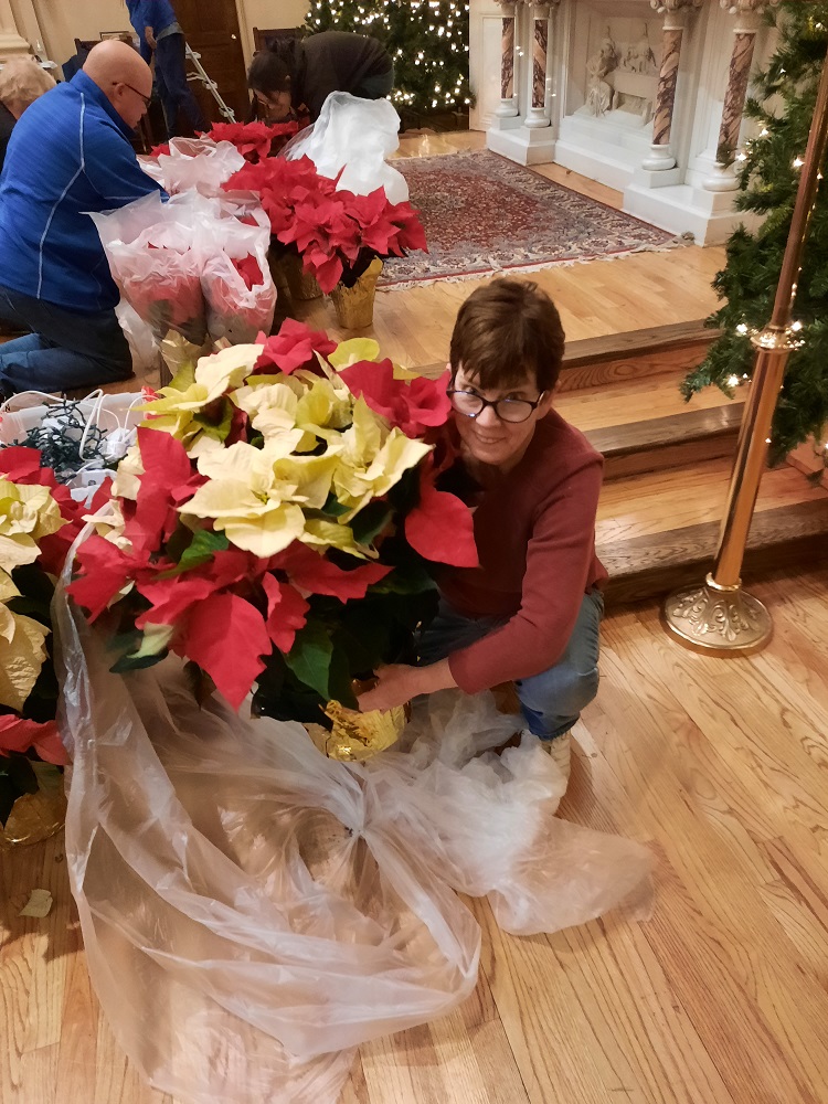 Dec 23, 2022. Knights help with decorating St. John the Evangelist Church for Christmas. Phase II, adding flowers. (LtoR) Br. William Sohm and Cindy Satterfield work with poinsettias.