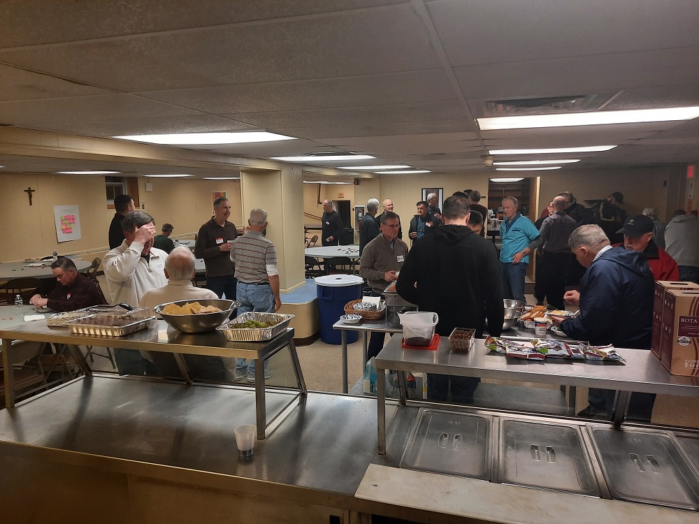 February 7, 2023. St. John's Parish "Mens Feast" is held in the parish cafeteria of St. John the Evangelist Catholic Church, Frederick, MD. The meal was prepared by volunteer Knights.