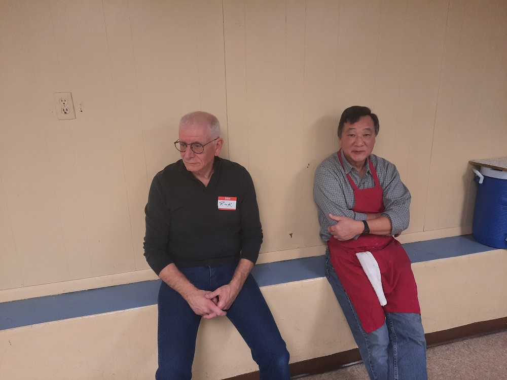 Our chef Br. Maurice Wong (R) and his worthy kitchen assistant PGK Rick Casazza rest and watch as the meal is served.