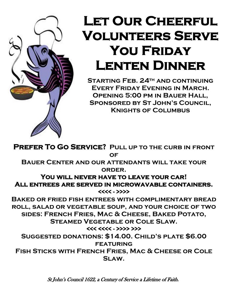 It's mid-February 2023, and we're gearing up for another series of Friday Lenten Fish Dinners at St. John the Evangelist Catholic Church, Frederick, MD.