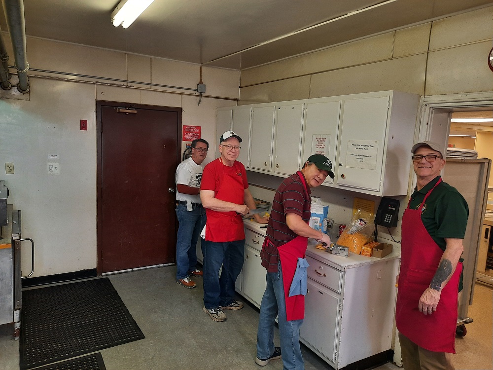 In the kitchen, (LtoR) Br. Brian Duncan, PGK Bob Krajewski, Br. Maurice Wong (our head chef), and PGK Jim Sier.