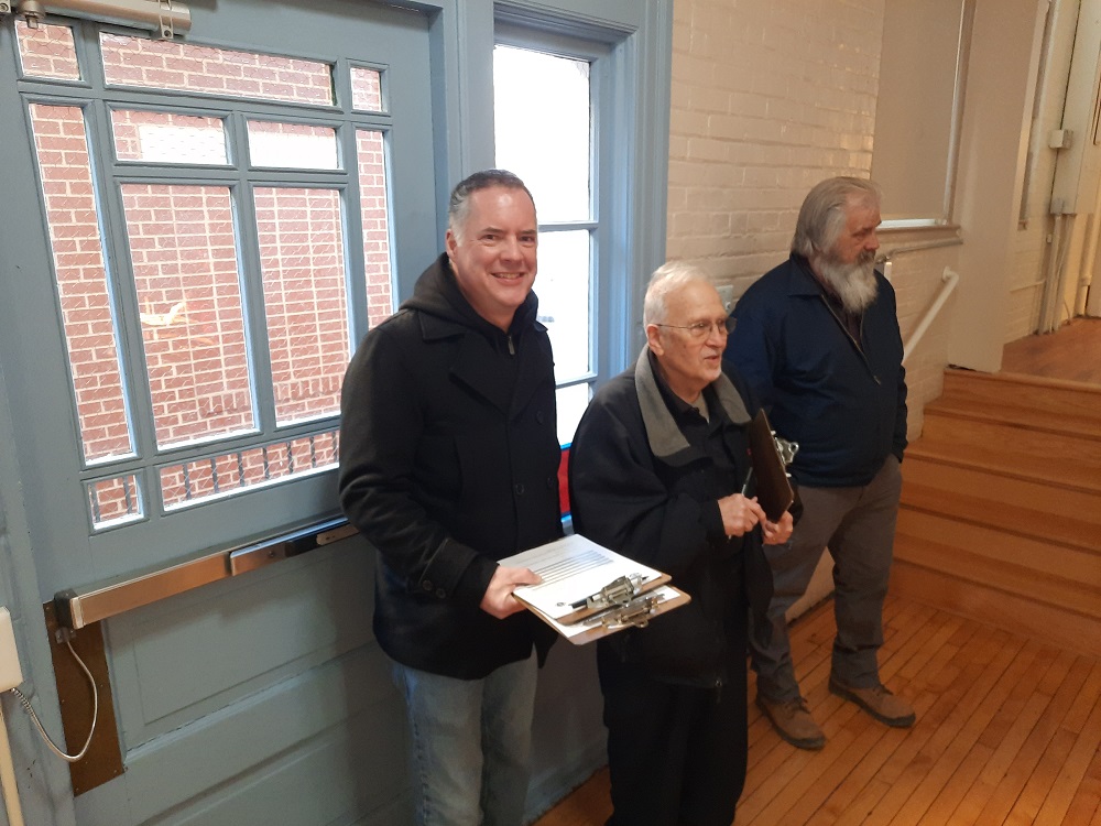 Curbside service team, (LtoR) Deputy Grand Knight Sean McFarland and Br. Woody Johnston. St. John's parish employee Gene Fulton standing in rear.