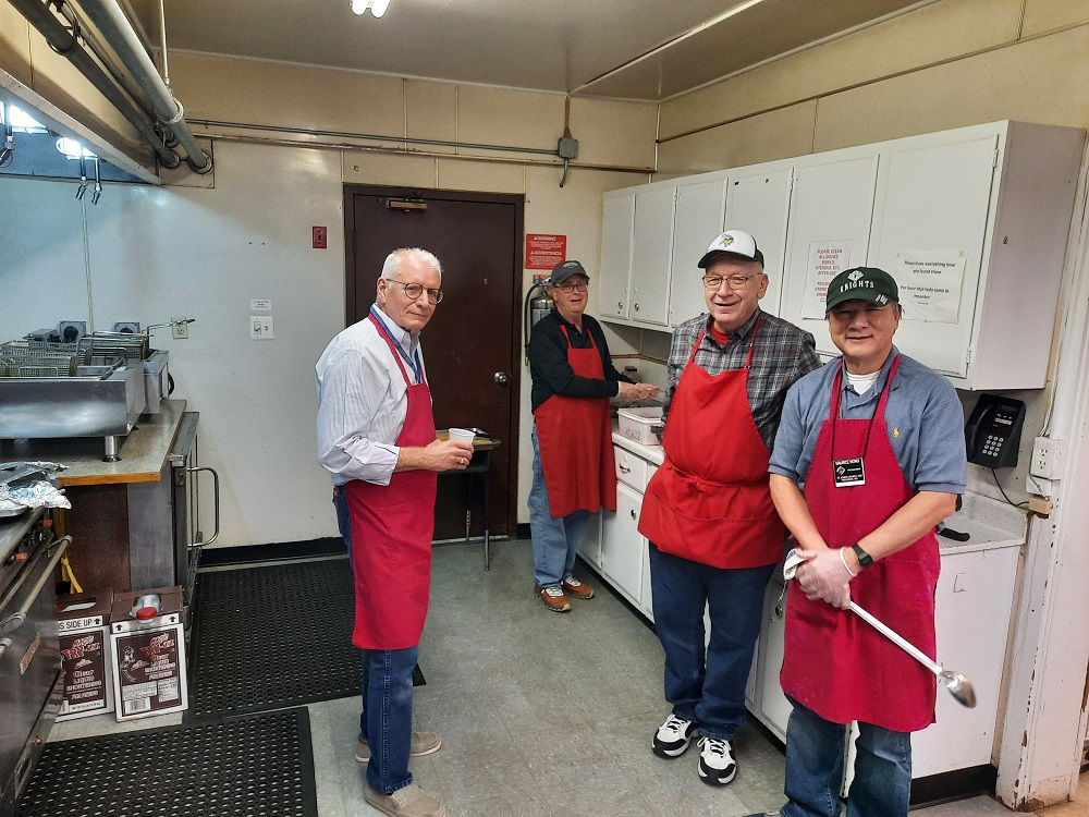 (LtoR) In the kitchen, PGK Rick Casazza, Br. Brian Duncan, PGK Bob Krajewski, and Br. Maurice Wong.