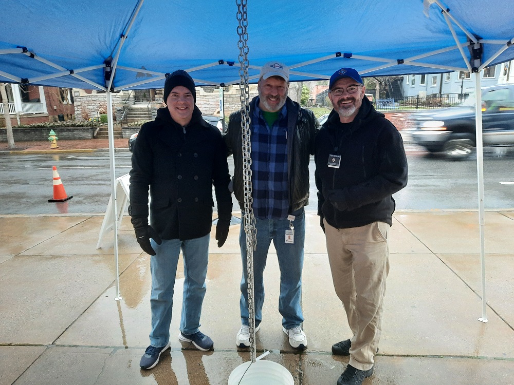 Friday, March 3, 2023. Our Friday Lenten Fish Dinner in the Sister Margaret Bauer Evangelization Center at St. John the Evangelist Church, Frederick, MD. (LtoR) Our curb service team, DGK Sean McFarland, Jimbo Cooper and Br. Troy Kiessling.