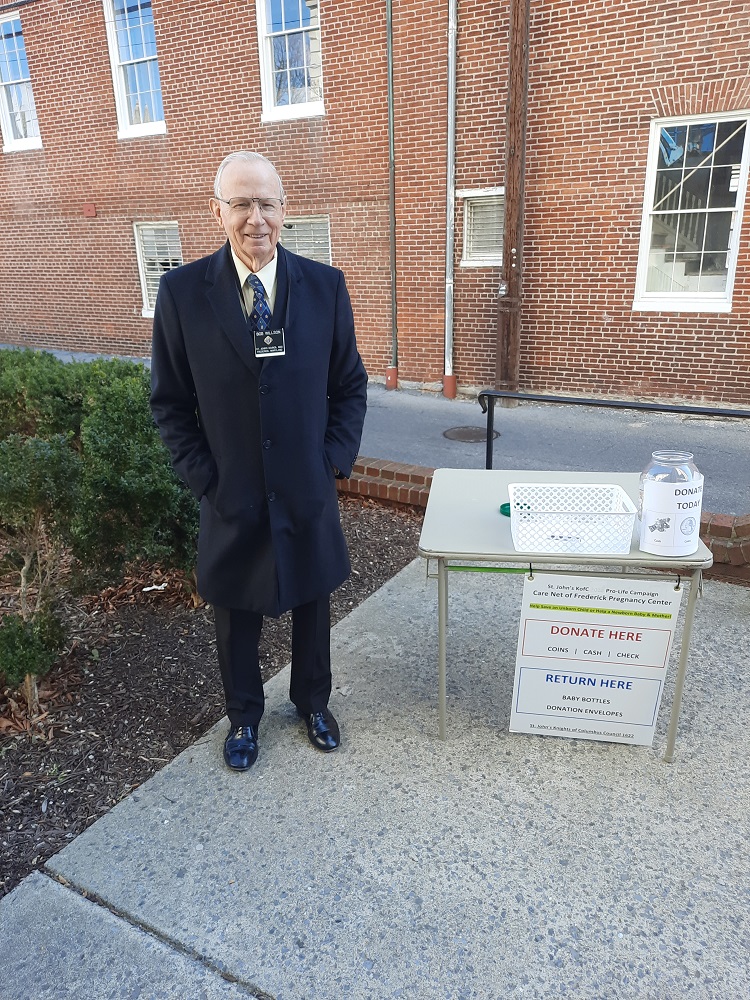 Sunday, March 5, 2023. Another day of our annual Pro-life Baby Bottle Campaign for Care Net of Frederick Pregnancy Center. We collected donations outside after Mass at St. John the Evangelist Catholic Church, Frederick, MD. Br. Bob Willson.