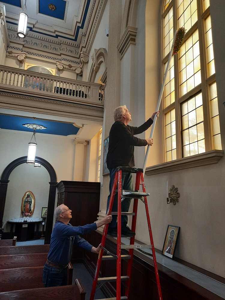 Holy Saturday, April 8, 2023, Knights and wives help decorate St. John the Evangelist Church for Easter.