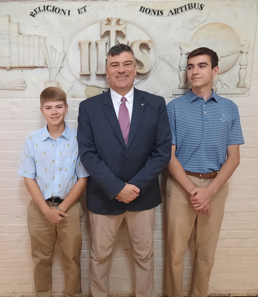 April 23, 2023. Degree Exemplification by St. John's Council hall of the Sister Margaret Bauer Evangelization Center at St. John the Evangelist Church, Frederick, MD. Degree recipient James J. "JJ" Brady Jr. (center) with his two sons.