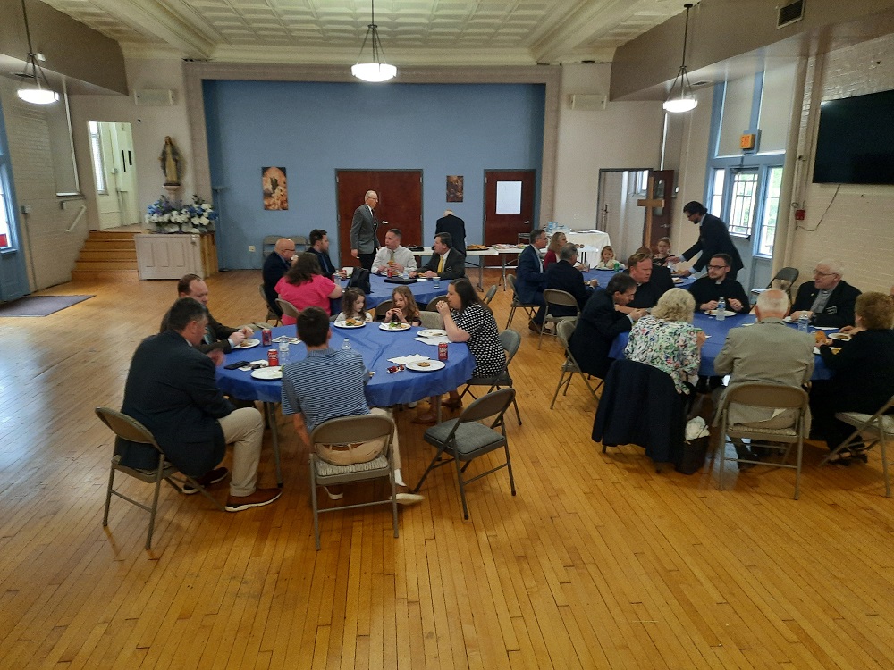 April 23, 2023. Degree Exemplification by St. John's Council hall of the Sister Margaret Bauer Evangelization Center at St. John the Evangelist Church, Frederick, MD. Members and guests share a light lunch.