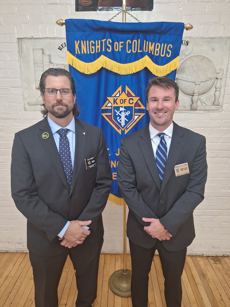 (LtoR) Grand Knight Rick Babbitt and KofC Insurance Advisor Br. Sam Stark.