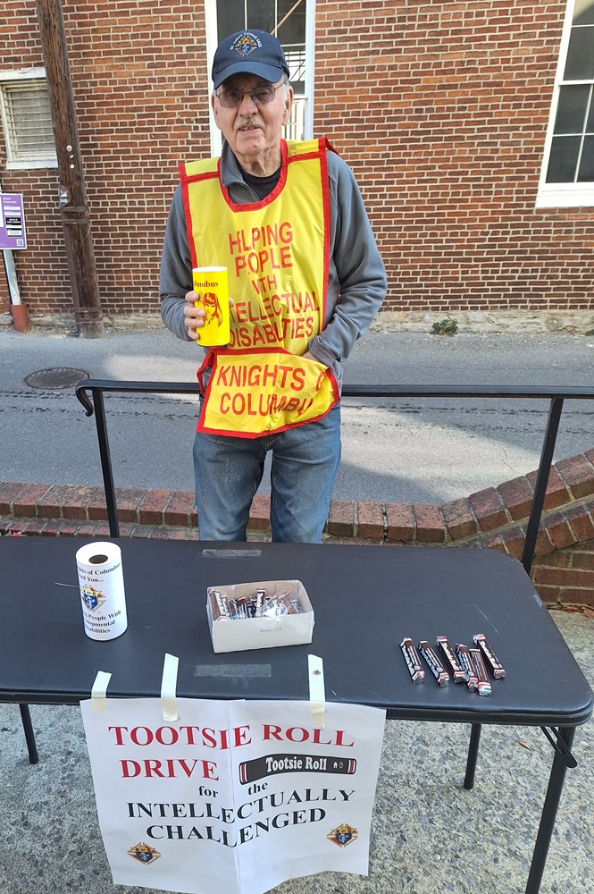 November 5, 2023, Knights collecting donations for our annual Tootsie Roll Drive for our intellectually challenged citizens in Frederick County, MD after Masses at St. John the Evangelist Church, Frederick, MD. Br. Jim Schneck.