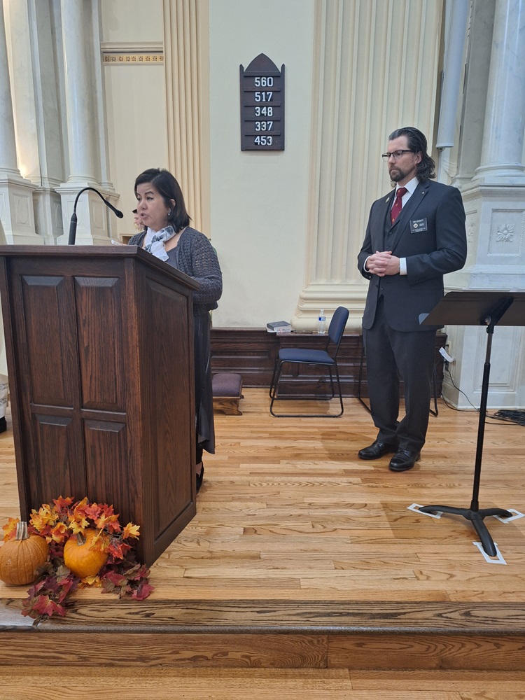 (LtoR) Cantor Vangie Quiambao and Grand Knight Rick Babbitt.