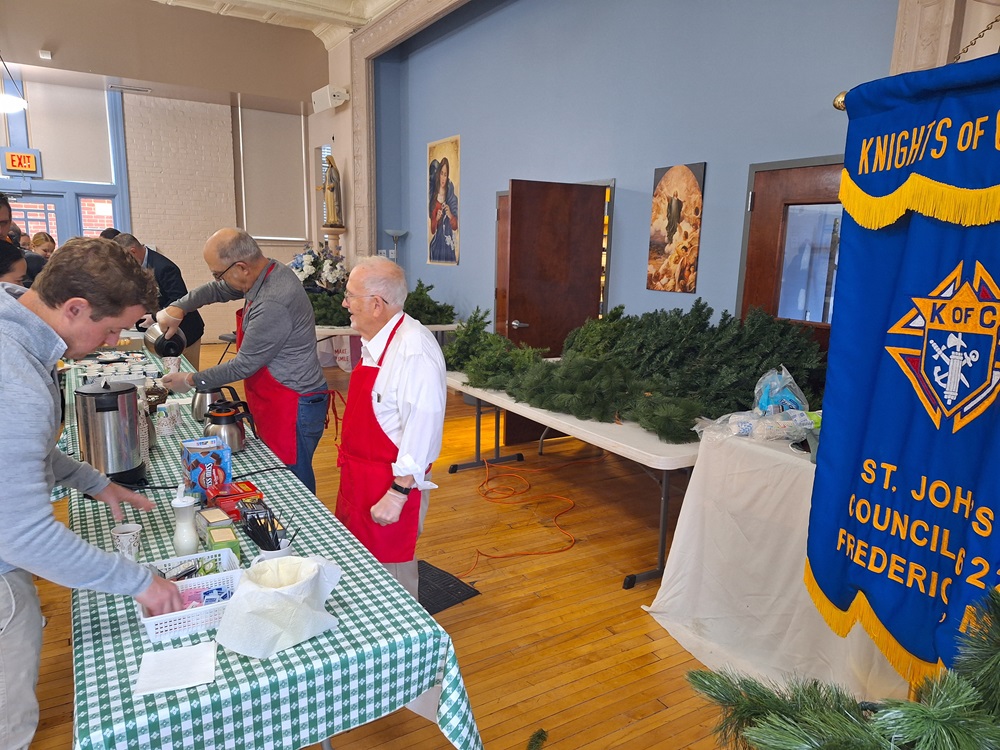 December 3, 2023. Knights of St. John's Council hosted our monthly Coffee and Donuts Social after Sunday morning Masses in the hall of the Sr. Margaret Bauer Evangelization Center at St. John the Evangelist Church, Frederick, MD.