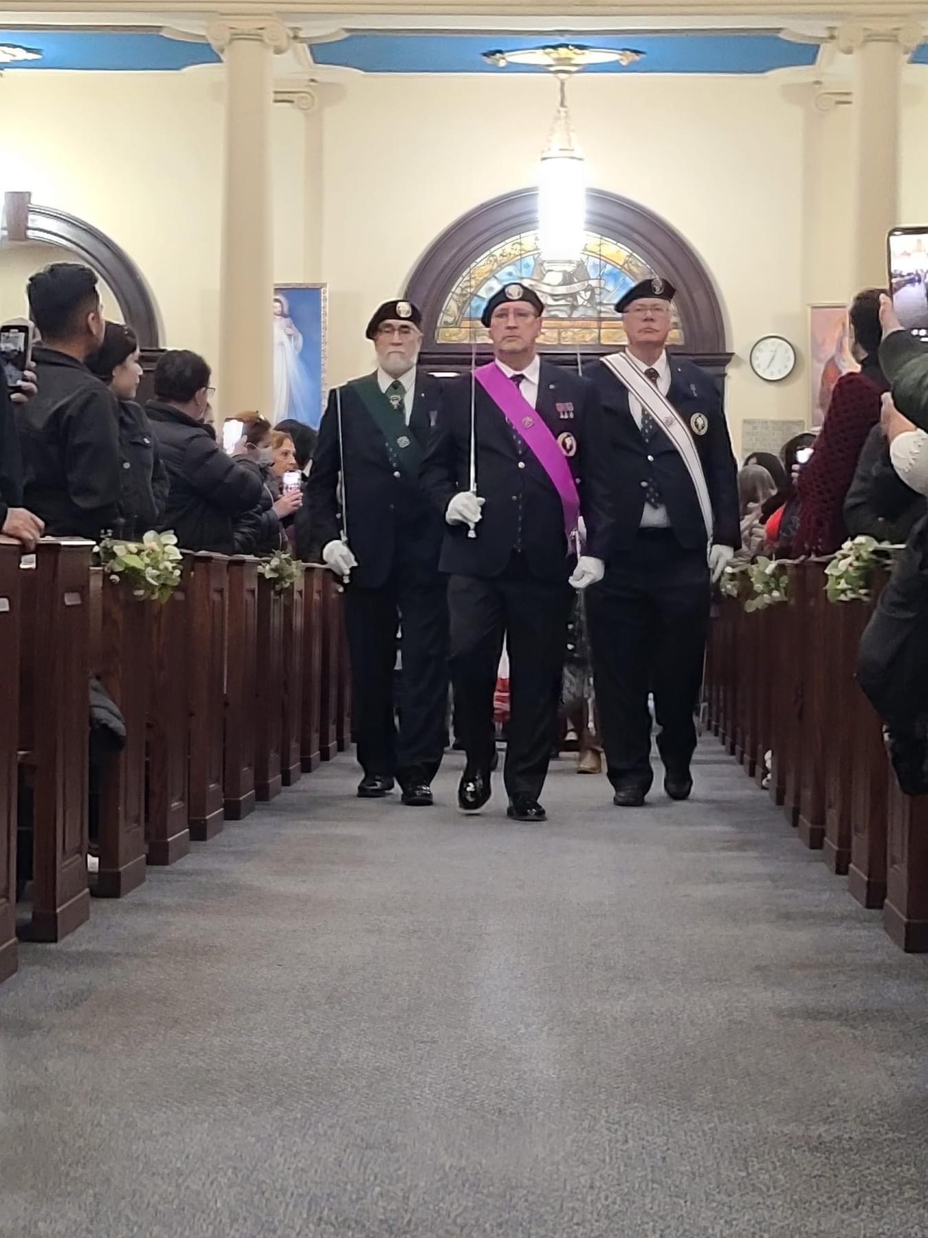 (LtoR) SK Martin "Marty" Nau (District Marshall, Father Michael J. McGivney Assembly 2595), Bishop McNamara Assembly 384 Color Corp Commander - SK Walter John Leskuski, PFN (Cncl 14011), and Bishop McNamara Assembly 384 member SK Dave Satterfield (PGK St. John's Council 1622).
