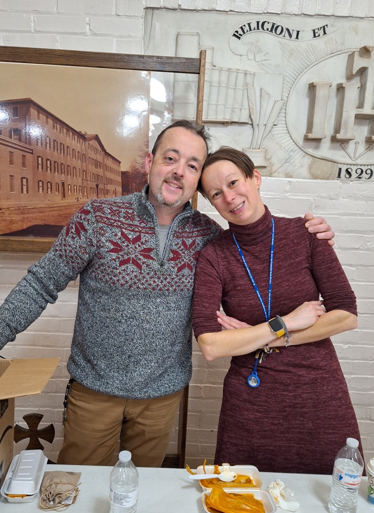 Dec 12, 2023 Knights of Columbus assist during and after the Mass for the Feast of Our Lady of Guadalupe at St. John the Evangelist Church, Frederick, MD. (LtoR) Br. Bobby McQuin and Megan McQuin.