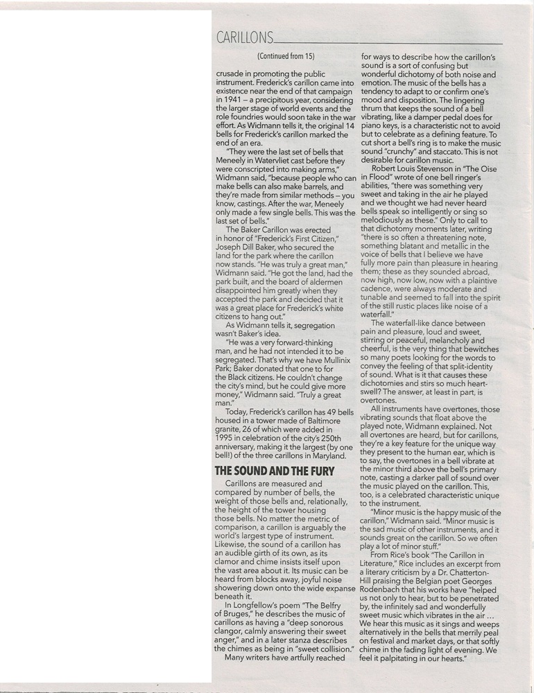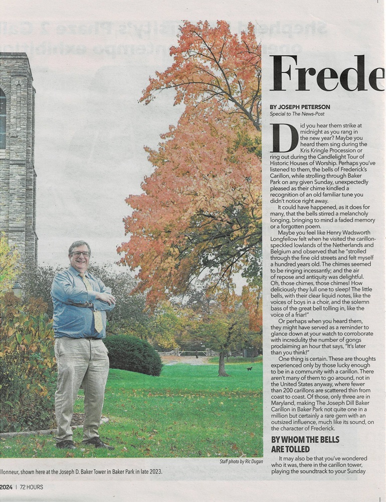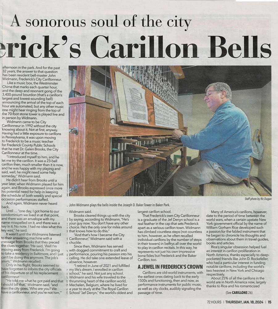 January 19, 2024 Frederick-News Post article on Br. John Widmann, member of St. John's Council 1622, and Frederick City's Carillonneur.