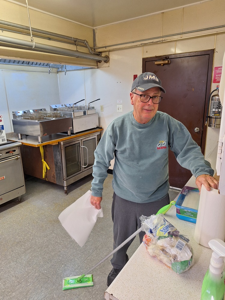 On Saturday, February 10, 2024 - Knights clean the kitchen and cafeteria in preparation of our upcoming Lenten fish dinners. Br. Brian Duncan cleaning the kitchen.