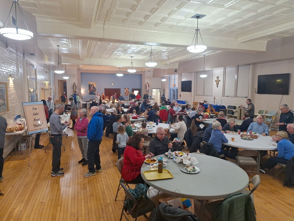 On Friday, February 16, 2024 - Knights and family members served our first Friday Lenten fish fry for 2024. View of the dining room.