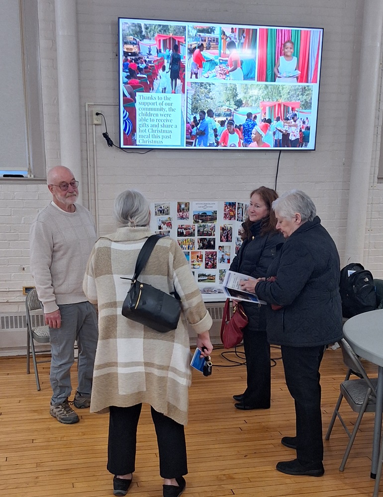 Sunday, March 3, 2024 - Br. Tom Rogers (standing on left) hosts an information table in the hall for the St. John and St. Joseph HAITI OUTREACH campaign.