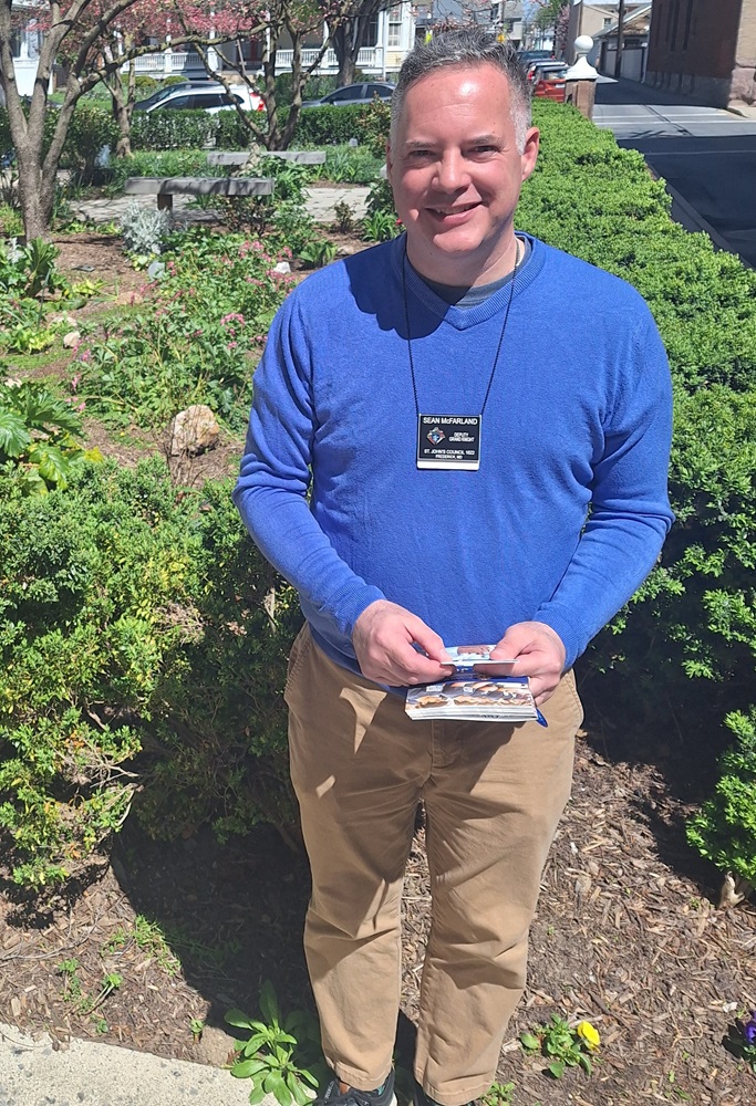 Sunday, April 14, 2024. KofC St. John's Council No. 1622 conducts a membership drive after Masses at St. John the Evangelist Church, Frederick, MD. Deputy Grand Knight Sean McFarland.