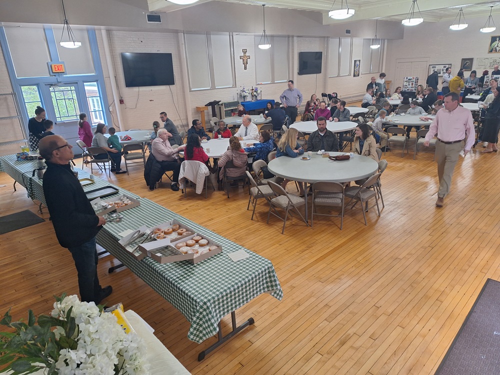 May 5, 2024 - St. John's Council hosted our last Coffee and Donut Social for the summer after Masses at St. John the Evangelist Church, Frederick, MD. Photo (LtoR): Br. Jack Vivona servs behind the donut table.