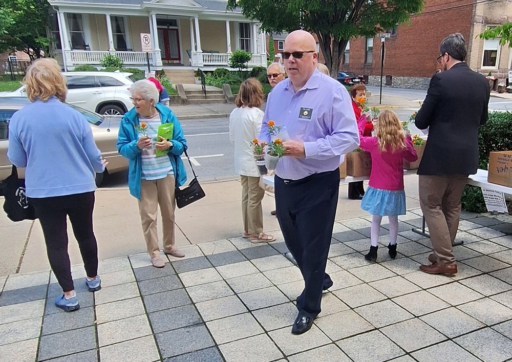 May 12 - Knights handed out Marigold plants to mothers, grandmothers, etc, after Masses at St. John the Evangelist Church, Frederick, MD, to honor mothers on Mother's Day. Photo: Br. Bill Sohm.