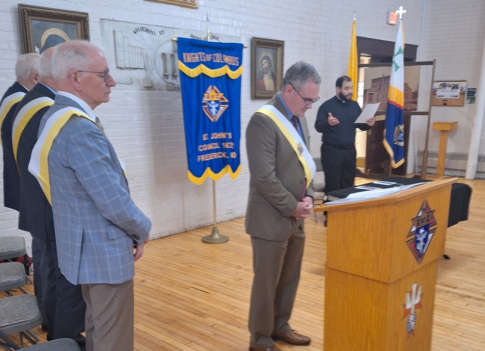 On Sunday, May 19, Knights of Columbus St. John’s Council No. 1622 conducted a Degree Exemplification for two new members, Brother (Br.) Salvator Ndikumagenge and Br. Bill King, in the parish hall at St. John the Evangelist Church, Frederick, MD.
