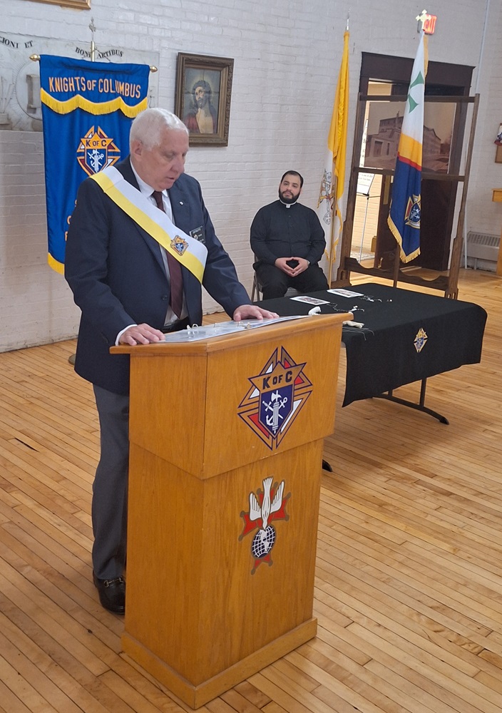 On Sunday, May 19, Knights of Columbus St. John’s Council No. 1622 conducted a Degree Exemplification for two new members, Brother (Br.) Salvator Ndikumagenge and Br. Bill King, in the parish hall at St. John the Evangelist Church, Frederick, MD.