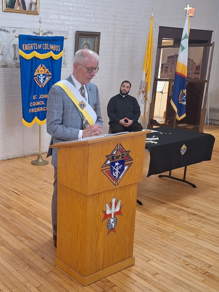 On Sunday, May 19, Knights of Columbus St. John’s Council No. 1622 conducted a Degree Exemplification for two new members, Brother (Br.) Salvator Ndikumagenge and Br. Bill King, in the parish hall at St. John the Evangelist Church, Frederick, MD.