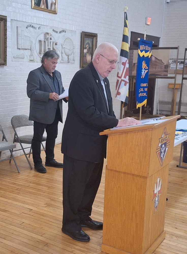On Sunday, July 28, 2024, the Knights of Columbus, St. John's Council No. 1622 held an "Installation of Officers" ceremony for their new 2024-2025 Fraternal Year in the hall of the Sister Margaret Bauer Evangelization Center at St. John the Evangelist Catholic Church, Frederick, MD.