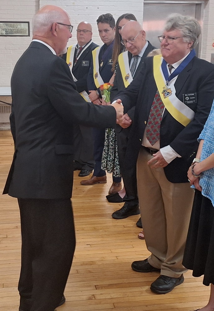 Maryland District 25 Deputy John Szarnicki presents the jewel of office to Incoming Treasurer William Cutchin.