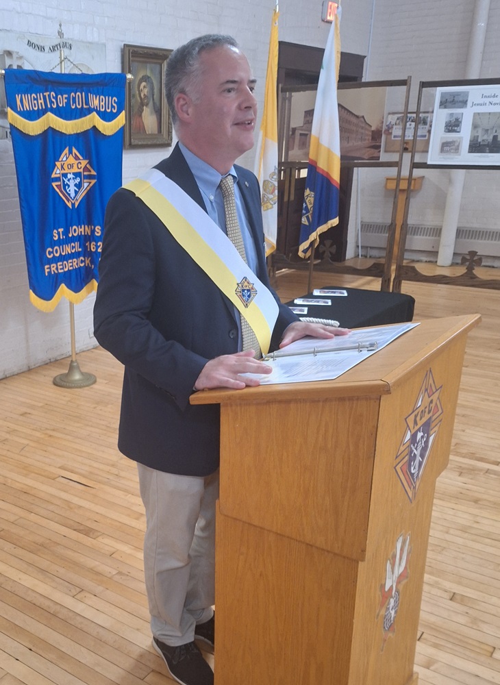 On Sunday, August 4, 2024, Knights of Columbus St. John’s Council No. 1622 conducted a Degree Exemplification for three new members, Brother (Br.) John Cipollo, Br. Cameron Earl, and Br. Jay Perera, in the parish hall at St. John the Evangelist Church, Frederick, MD.