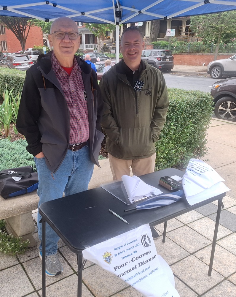 29 Sep 2024. Knights selling tickets for a Four-course Gourmet Dinner to be held on October 11. Photo (LtoR): PGK Bob Krajewski and Grand Knight Sean McFarland.