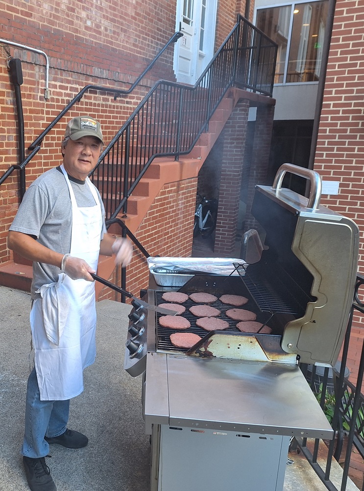 3 Oct 2024. St. John's Council 1622 prepares a meal for a Young Adult gathering in the parish hall at St. John the Evangelist Church, Frederick, MD. Photo: Br. Maurice Wong is manning the grill.