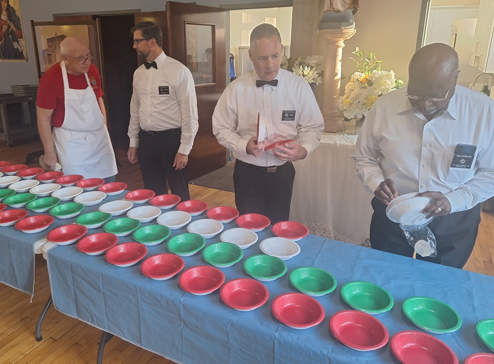 Friday, 11 Oct 2024. St. John's Council hosted a very successful KofC Gourmet Dinner fundraiser, from the lighting of the stove pilots to boxing up doggy bags and guests relaxing after dessert, in the hall of St. John the Evangelist Church, Frederick, MD. We had a great serving team. Kudos to Bob Krajewski, Maurice Wong and their kitchen team for preparing a fabulous dinner.