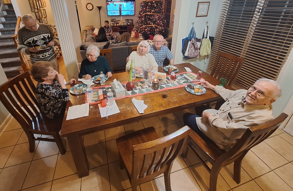 December 7, 2024. St. John's Council 1622 celebrates at a council family Christmas party at the home of Grand Knight Sean and Jessica Babbitt. Photo (LtoR): Linda Boehman, Martha Willson, Pat Harrison, PGK Michael Harrison, and Br. Woody Johnston.