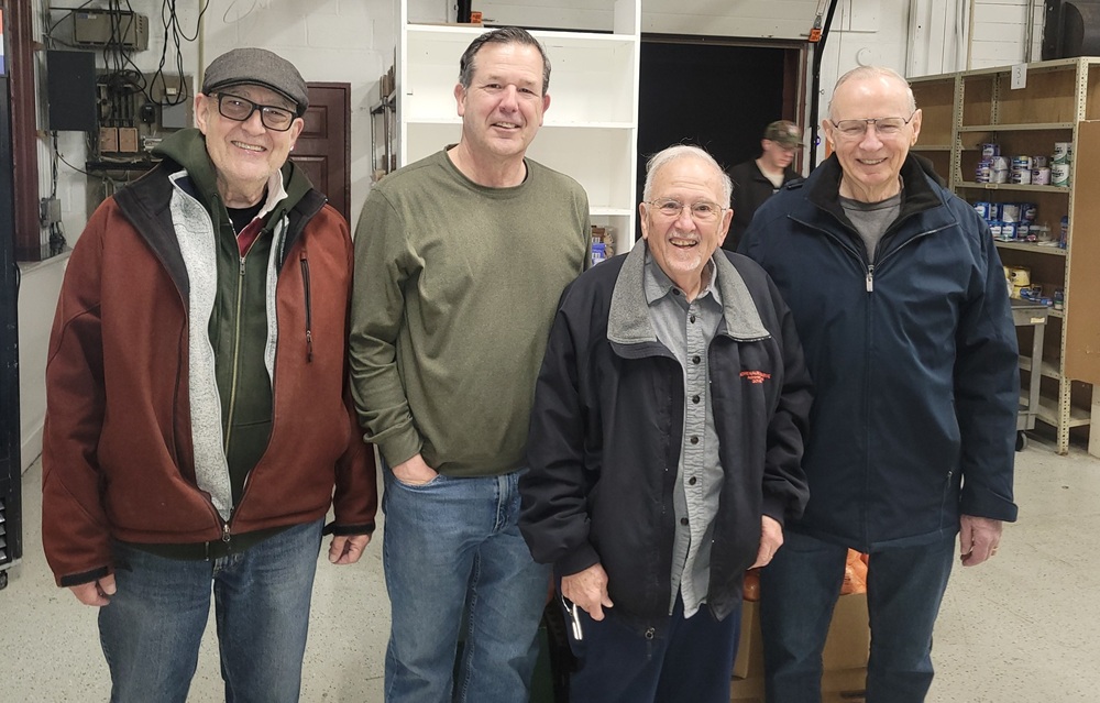 Saturday, March 22, 2025. Volunteers at our monthly SHARE Food Co-operative Distribution Site at the Frederick Food Bank, Frederick, MD. Photo (LtoR): Br. John Fischer, PGK Lee Ericksen, Br. Woody Johnston, and Br. Bob Willson.