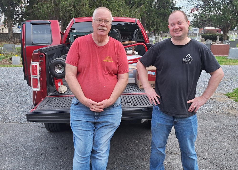 Saturday, March 29, 2025. St. John's Council 1622 Knights assist in moving an elderly parishioner to her new apartment. Photo (LtoR): PGK Dave Satterfield and Br. Michael Delaney.