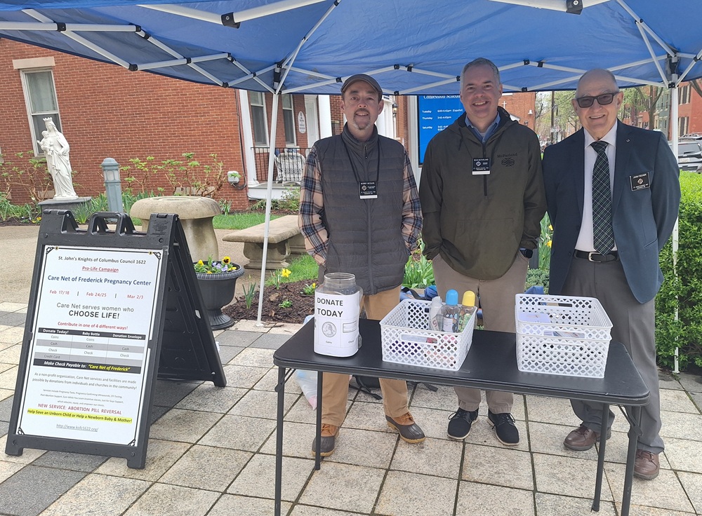 Sunday, April 6, 2025. Knights collect donations after Masses at St. John the Evangelist Church with our annual Baby Bottle Csmpaign for Care Net of Frederick County, MD. This year we collected over $5,500.00 for Care Net.