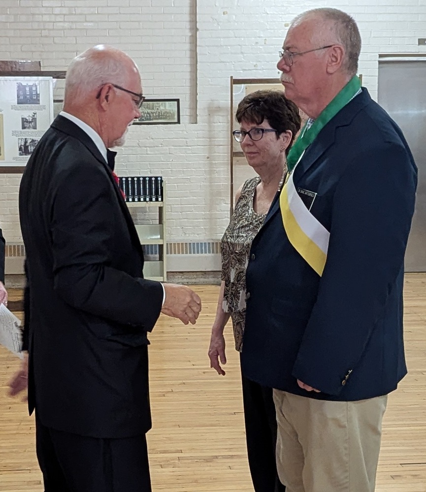 Photo: District 25 Deputy, Br. John Szarnicki, installs incoming Trustee 3 Year, PGK Dave Satterfield, supported by his wife Cindy.