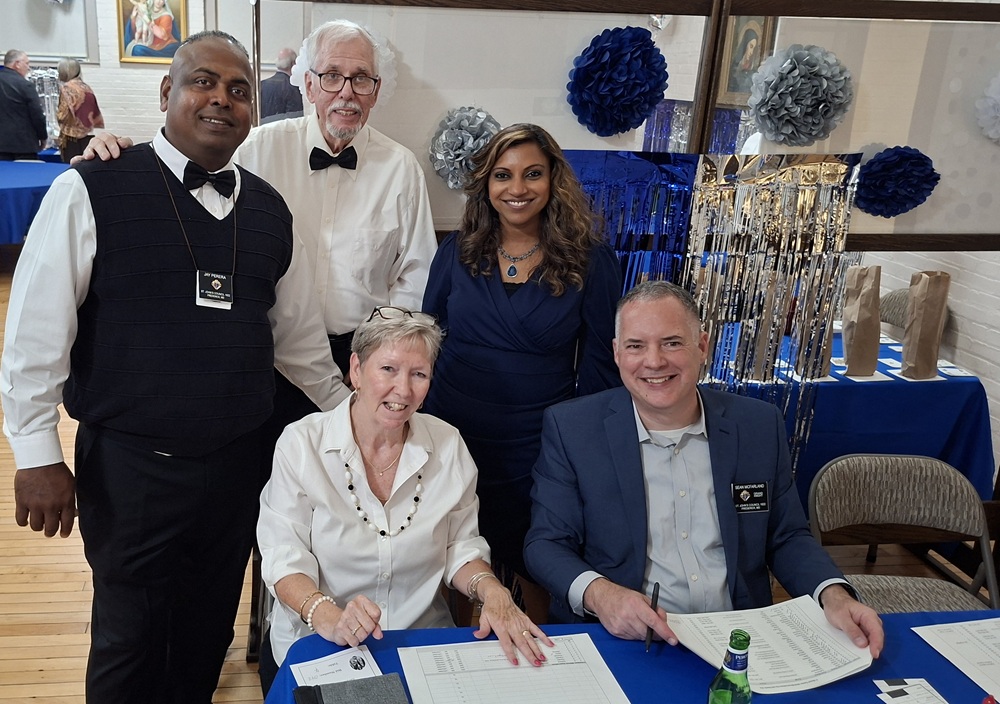 (LtoR) Br. Jay Perera, Br. Bob Boehman, Regina Casazza, Dinusha Perera, and Grand Knight Sean McFarland at the entrance table.