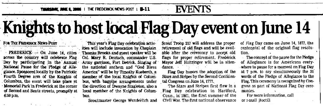 An extract from "Columbianism in Maryland 1897-1965", KofC Maryland State Council, 1965