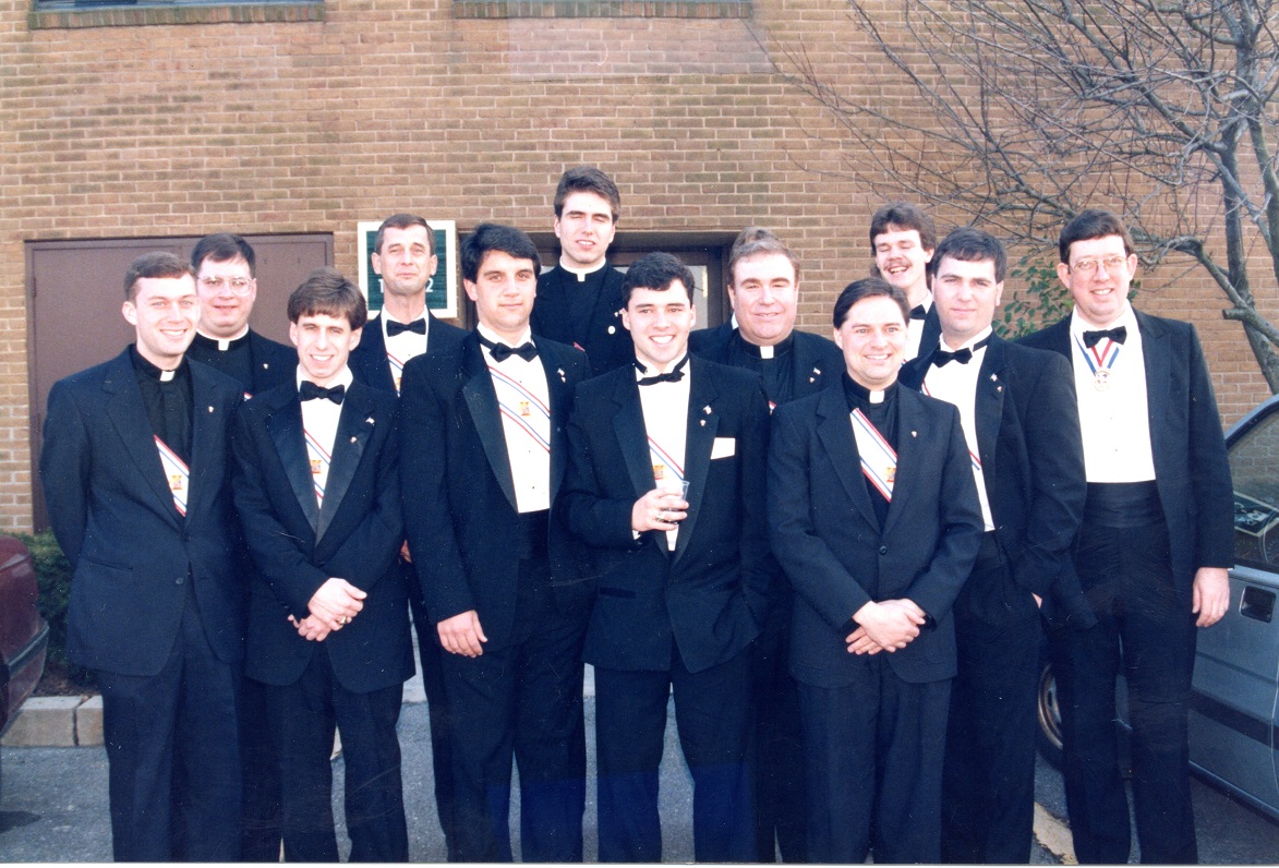 SK Edgar Haynes (Far right, Cncl 1622), SK Anthony Jack (3rd from right in rear, Cncl 1622), SK Dan Eppley (4th from left), the rest are seminarians from Mount St. Mary's.