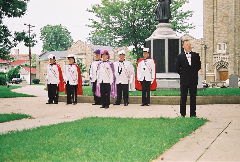 Color Corps in background (LtoR): SK Dave Richards (Cncl 11703, Assy 384), SK William Kinsella Sr. (Cncl 1622, Assy 384), SK Richard Tymoch (Cncl 11815, Assy 384), PFN Robert Jack (Cncl 11703, Assy 384), Faithful Navigator Greg Loss (Assy 384), SK Mathew Meadows (Cncl 1622, Assy 384).