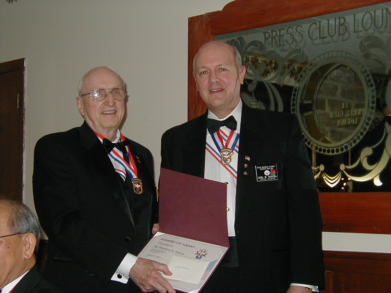 SK Ted Varson (Cncl 1622, Assy 384) recieves award from Faithful Navigator Joel Tootill (Cncl 1622, Assy 384).