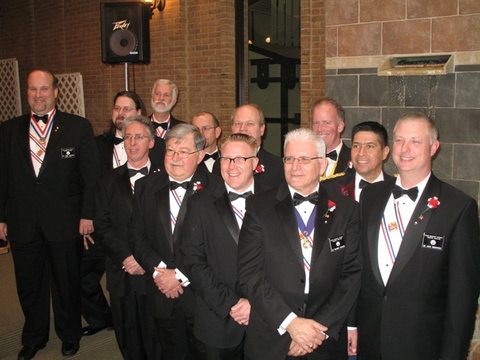 (LtoR) SK Dirk Griffin (Assy 384, Cncl 12255), Unkown Sir Knight, Unknown Sir Knight (in front), Faithful Navigator SK Duane Singleton (Cncl 12255), SK Lawrence "Larry" Kmiecik (Assy 384, Cncl 12255 - in front), Unknown Sir Knight, SK Marc Longenecker (Assy 384, Cncl 14011 - in front),SK David Baldwin (Assy 384, Cncl 14011), SK Rick Casazza (Assy 384, Cncl 1622 - in front),SK Robert McNickle (Assy 384, Cncl 1622), Unknown Sir Knight, and SK Jack Medovich (Assy 384, Cncl 12255).