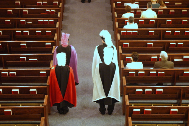 The Bishop McNamara Assembly Color Corps escorts the chair officer's wives to the sanctuary.