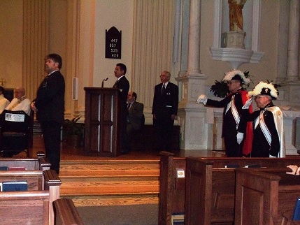 Knights of Columbus commemorate their recently deceased Knights and spouses while the Color Corps salutes.
